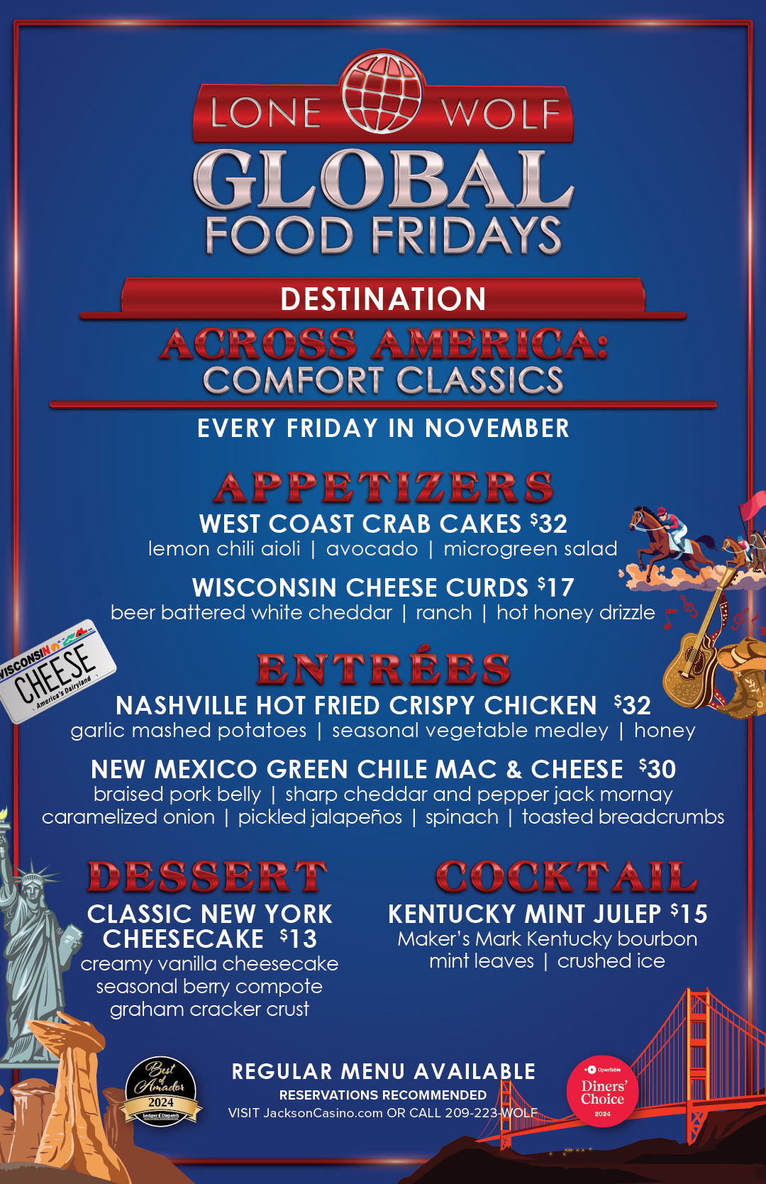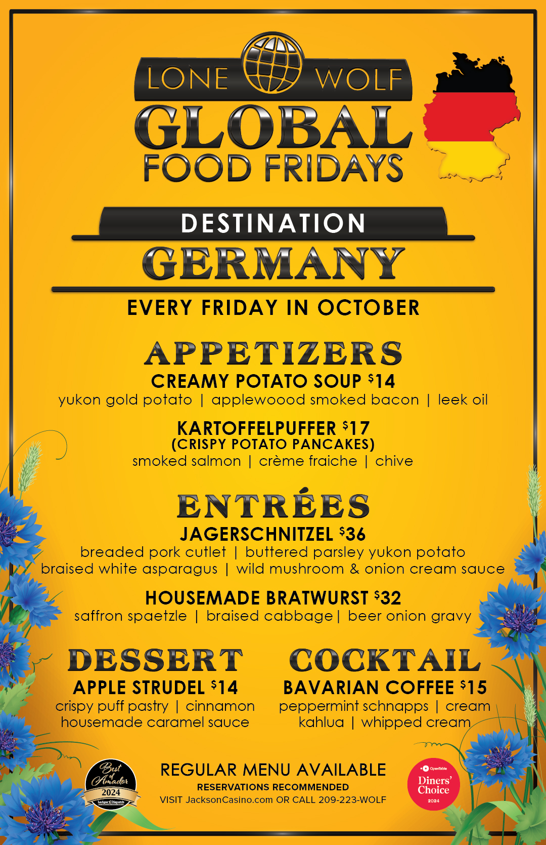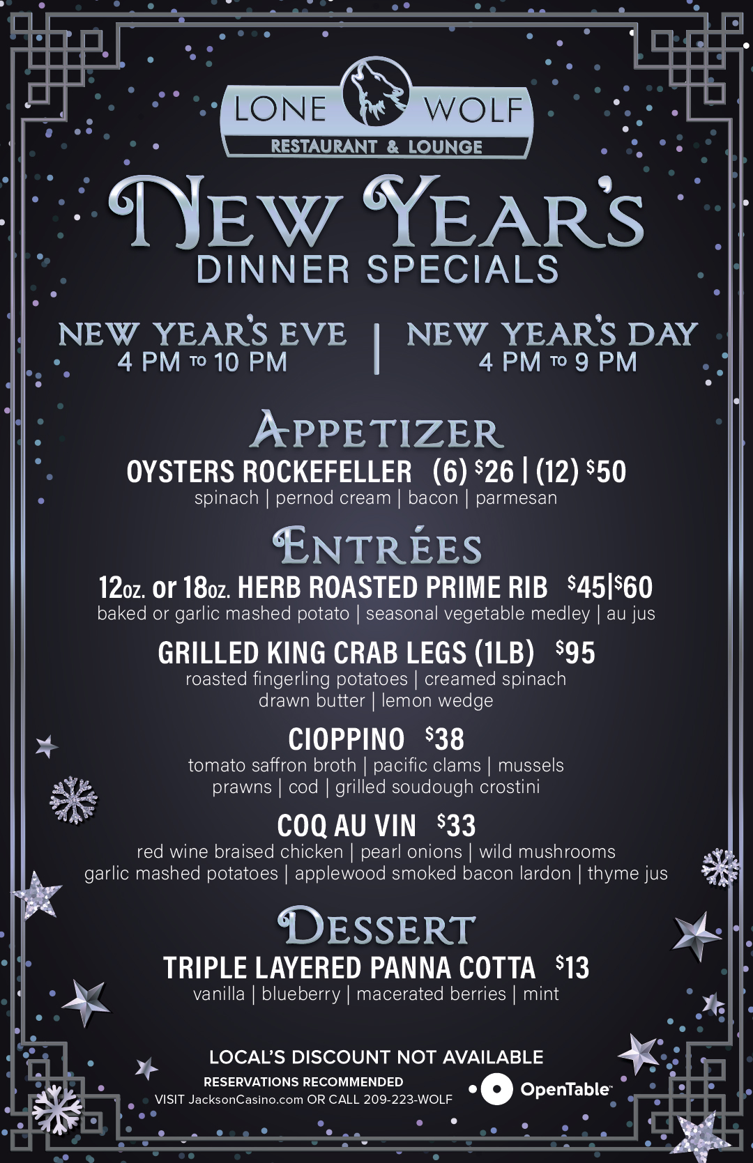 Join us for delicious cuisine and attentive service in a friendly atmosphere. Experience terrace dining with beautiful sunset views. See why the locals voted Lone Wolf Best of Amador year after year!