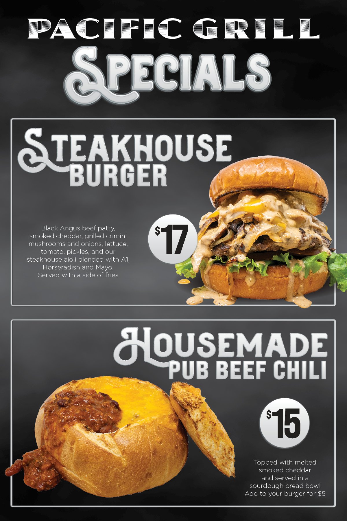 Pacific Grill combines the best of California and Asian cuisine in a relaxed setting. More than a food court, visit our version of quick serve dining. Asian Grill offers Southeast Asian Wok specialties, Vietnamese style grilled meats, noodle bowls, rice bowls, and more. California Grill offers Uncle Bud’s burgers, savory garlic fries, sandwiches, sauced wings, great pizzas and so much more.