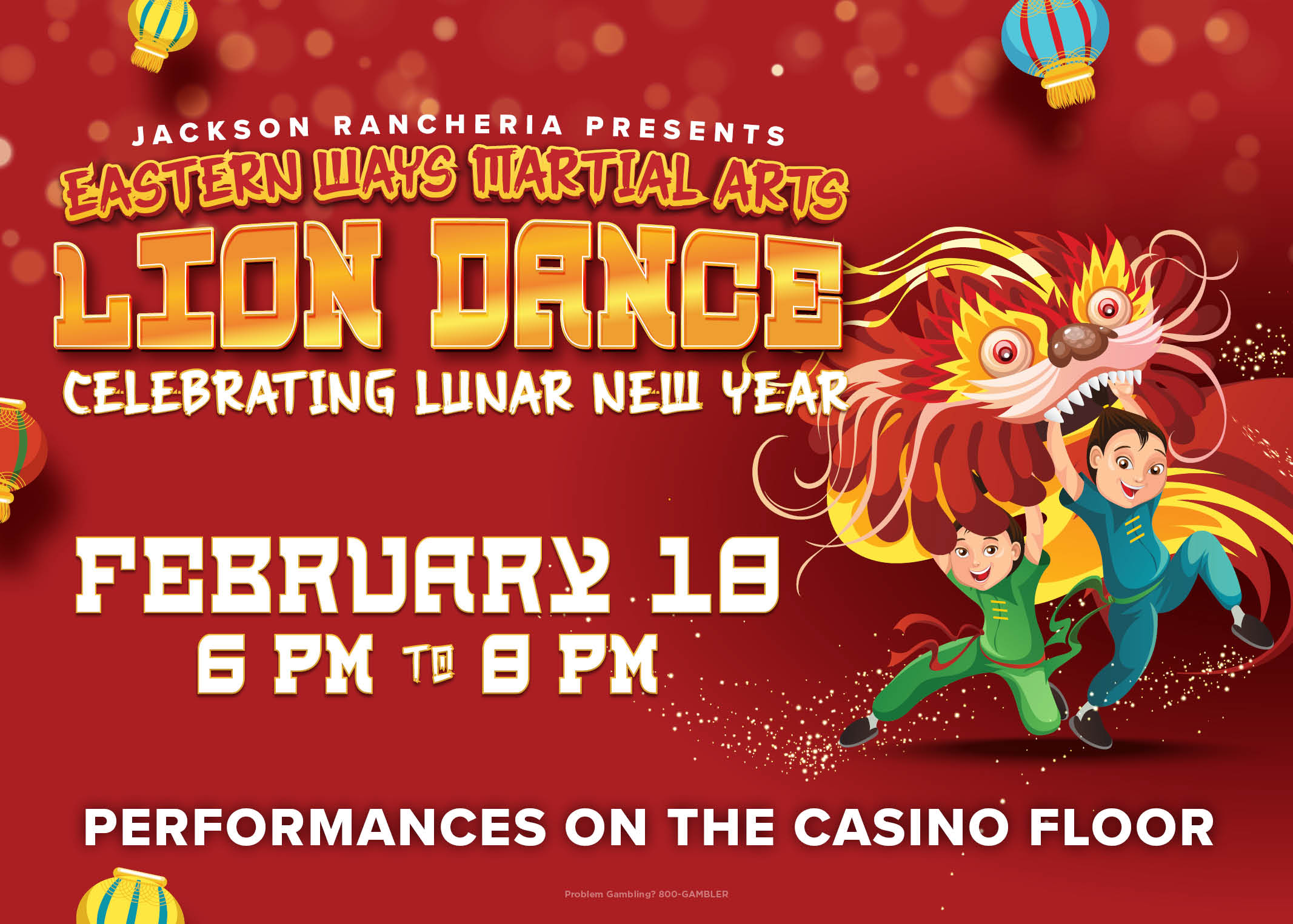 Jackson Rancheria Casino Resort welcomes the Eastern Ways Martial Arts as they bring the Lion Dance to the casino floor on Wednesday, February 18, to celebrate Lunar New Year!