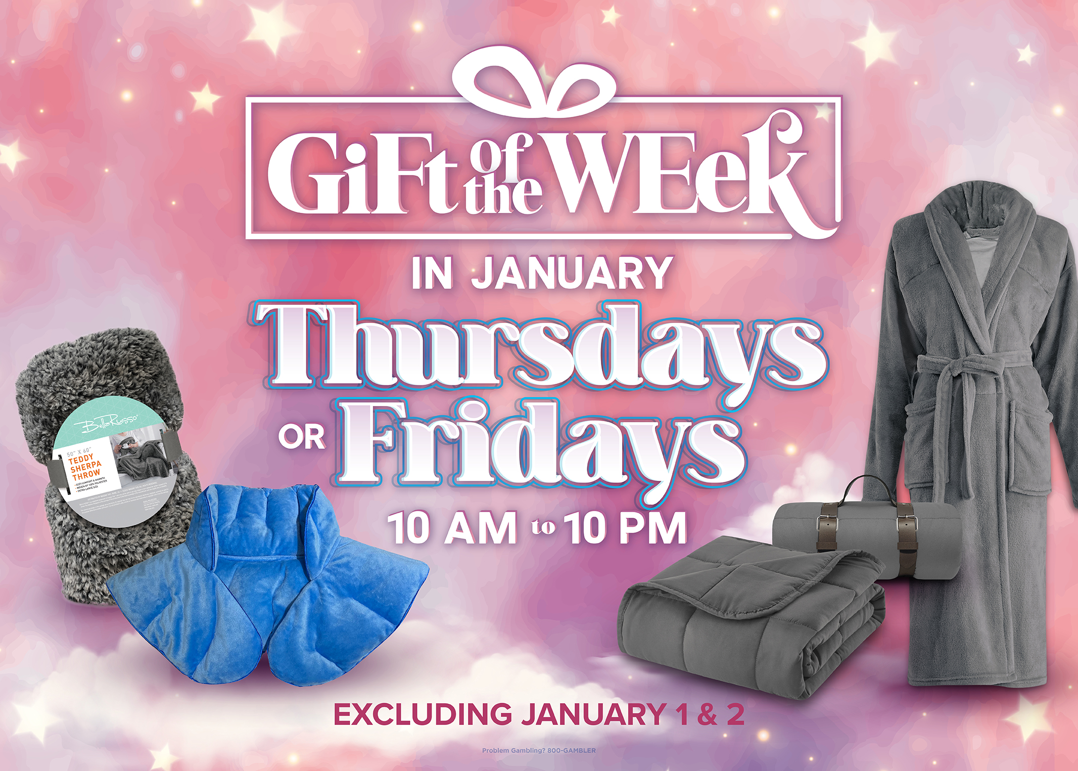 Must be or become a Dreamcatcher’s Club® member to participate– one gift per guest per promotional week, including free gifts. If all gifts are given out before the end of the promotional period, guests will still print their redemption receipt and take it to the Dreamcatcher’s Club®, where they will be given a raincheck for the gift. The gift will arrive within 5 to 7 business days. Visit the Dreamcatcher’s Club® for full details. While supplies last. Points must be earned between 10 a.m. and 10 p.m. on each promotional day. All rights reserved. Problem Gambling? 800-GAMBLER