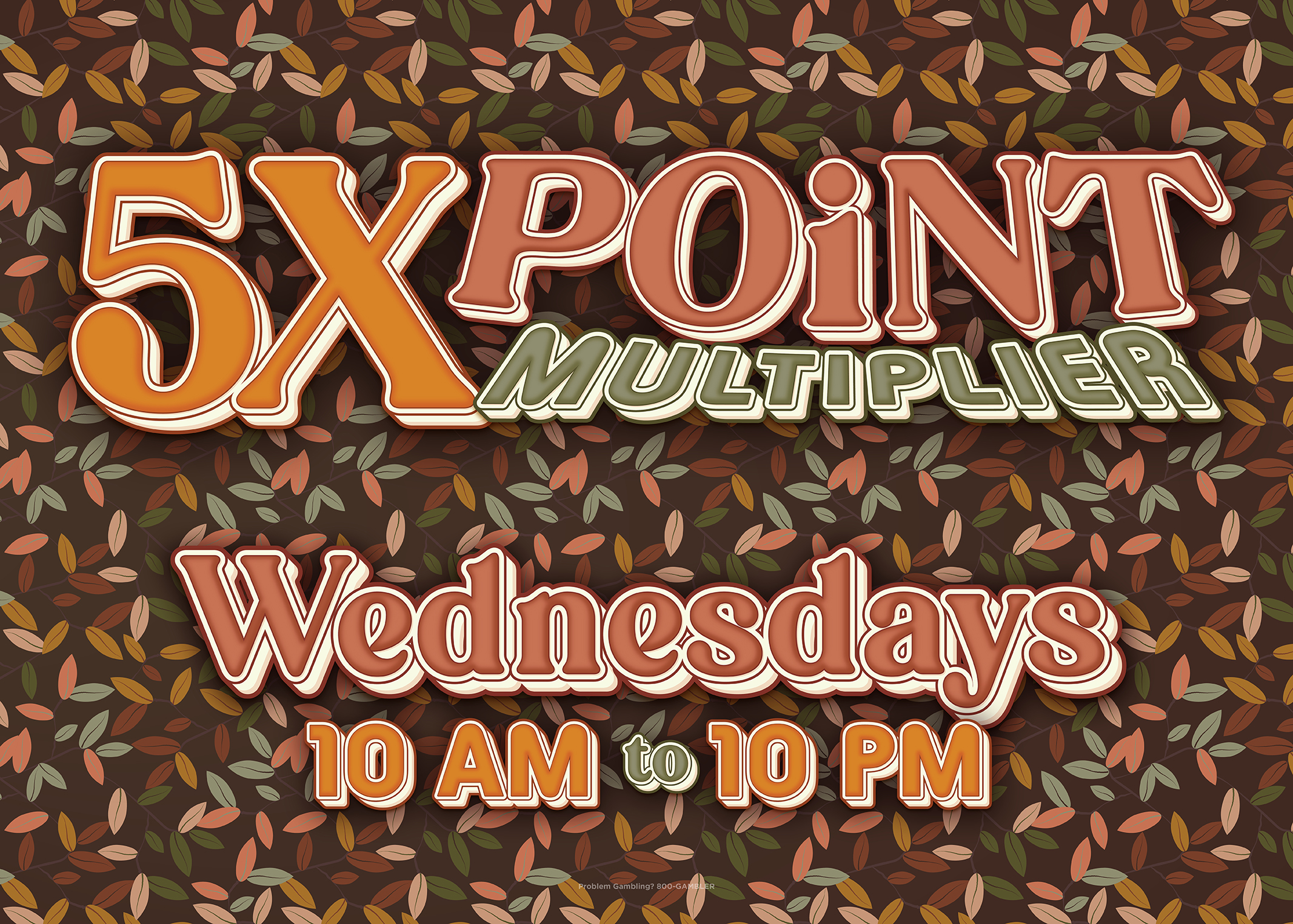 Must be or become a Dreamcatcher’s Club® member to participate. Limit of 100,000 multiplied points per person per promotional day. For more details, visit the Dreamcatcher’s Club®. All rights reserved. Problem Gambling? 800-GAMBLER