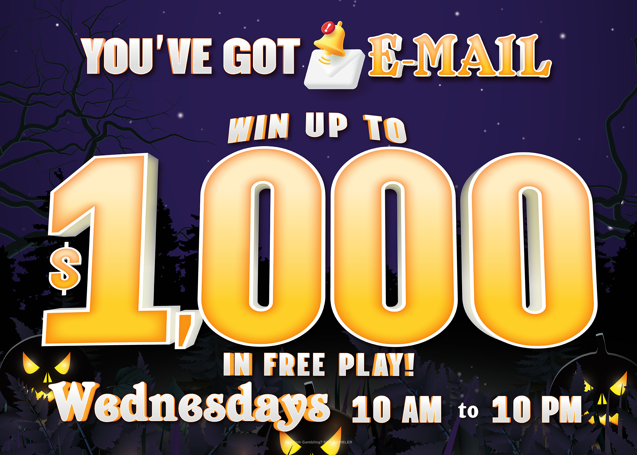 All Dreamcatchers Club® members with an active email address on file by September 24 will be rewarded every Wednesday in October with our You’ve Got E-Mail Swipe & Win kiosk promotion from 10 a.m. to 10 p.m. Qualified Players swipe their Dreamcatchers Club® Card at any kiosk to win up to $1,000 in Free Slot Play! Don’t miss next month’s exclusive EMAIL promotion. Visit the Dreamcatcher’s Club®!